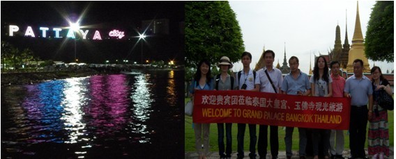 在导游的带领下,我们参观了泰国著名的旅游胜地——大皇宫和玉佛寺,欣赏了湄南河迷人的夜景,品味了生猛味美的海鲜,零距离接触了风情万种的人妖。而在结束了紧张而忙碌的展会后,我们更是怀着兴奋的心情,驱车前往了著名的海景度假胜地——芭提雅。蔚蓝透彻的海水,洁白松软的沙滩,特别清洁美丽,不禁使我们陶醉于大自然的怀抱之中。在此我们不仅在美丽的海滩上开展水上运动,在草棚屋顶、木廊相连的水上市场购买到物美价廉的物品,我们还到东芭乐园观赏到了泰国的传统民俗歌舞表演,独特的泰拳表演以及精彩有趣的大象表演。