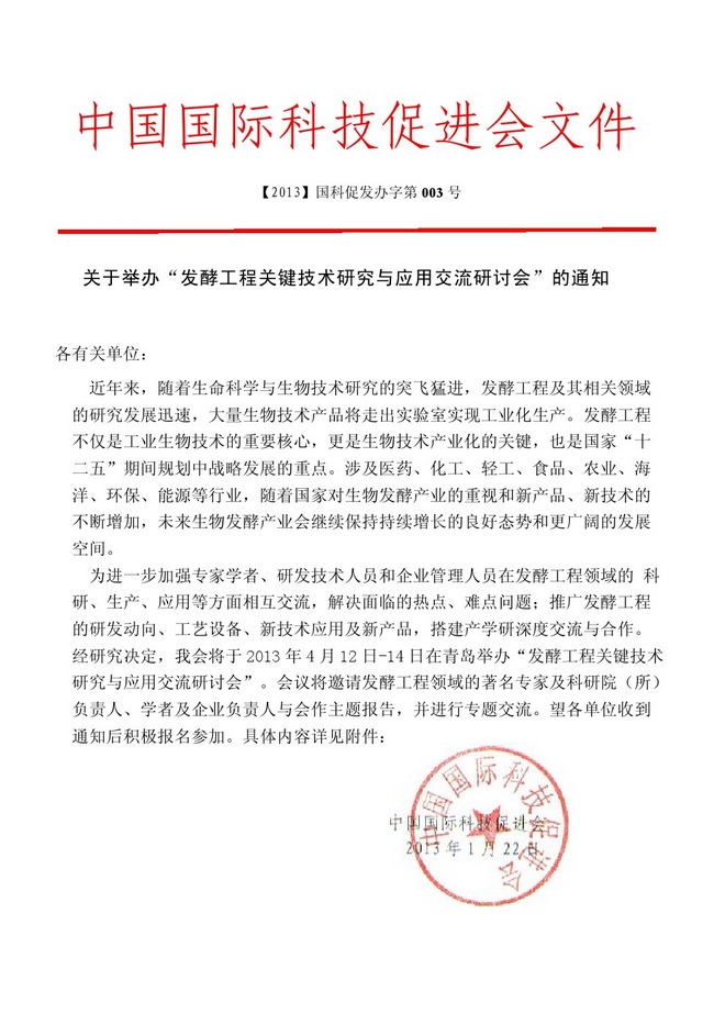 发酵工程关键技术研究与应用交流研讨会