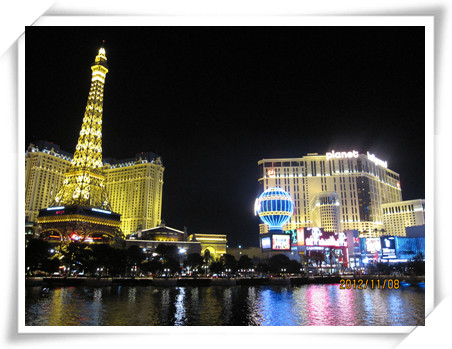 酒店的窗外就可以看到“埃菲尔铁塔”,夜晚走上街头,拉斯维加斯发达的酒店业,照亮了整个赌城。灯火辉煌的街区旁有着每个酒店特有的表演吸引着人群。